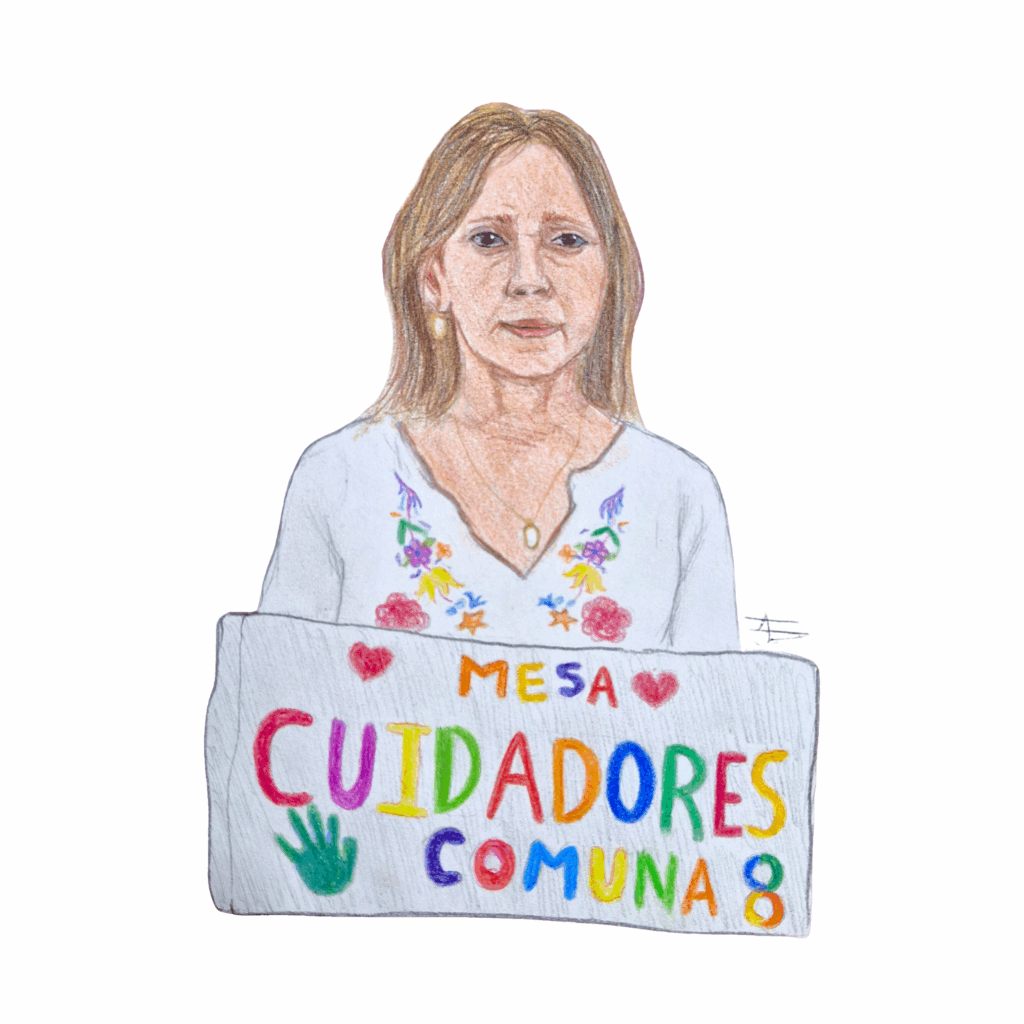 Como aún hay un largo camino para lograr la corresponsabilidad social en los cuidados, las búsquedas por el reconocimiento siguen siendo necesarias para aportar bienestar al trabajo de las personas cuidadoras. Marta, de 64 años, es la presidenta de la Mesa de Cuidadores de la Comuna 8 y ha trabajado desde el 2019 por los derechos de las personas cuidadoras en su comuna y en la ciudad, promoviendo la organización de este grupo poblacional para exigir al distrito capacitación, relevo y remuneración: «En 2019 me contacté con la Escuela para la Inclusión y pedí que nos dieran una capacitación de habilidades para la vida. Me dijeron que fuéramos a la sede en el Sagrado Corazón y yo respondí que ellos son los que deben llegar a los territorios porque nosotras somos mujeres cuidadoras, no devengamos salario y nuestro proyecto de vida quedó en standby«.