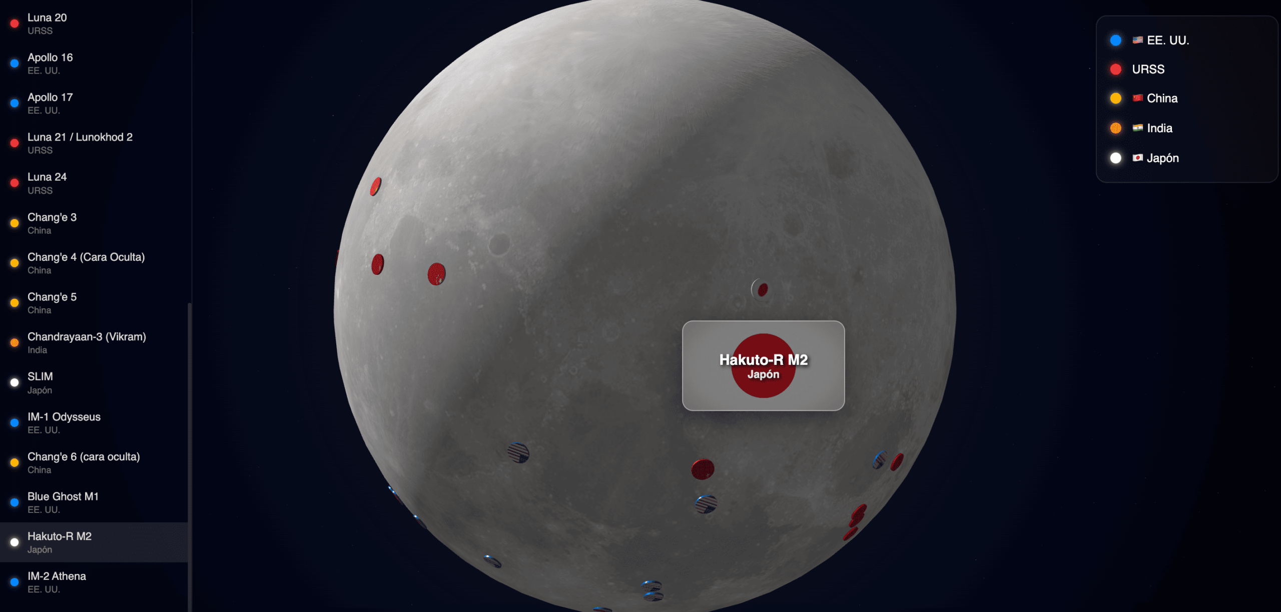 Creamos un mapa interactivo que detalla cada contacto de la humanidad con la superficie lunar: su origen, fecha y coordenadas. Sin embargo, la geografía de las misiones ha cambiado. Mientras la era bipolar priorizó la accesibilidad de la franja ecuatorial, la nueva etapa se dirige al Polo Sur. En los cráteres del satélite, la posible presencia de agua congelada marca hoy la hoja de ruta científica y estratégica de los nuevos actores espaciales.