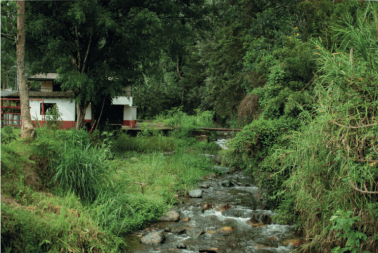 En una casa sobre un lote empinado cerca de la quebrada vive Manuel Velásquez desde hace 43 años. La quebrada suena azarosa y cada vez menos natural, no obstante, el lote, que además comprende su casa y otras dispuestas para recibir a ciclistas, está lleno de fauna nativa que convoca a los animales de la microcuenca. Manuel dice que alrededor de 2005 la gente empezó a dejar de bañarse en la quebrada, con lo que los balnearios y los estaderos empezaron a cerrar. Recuerda a sus vecinos que vivían de los balnearios, hoy construcciones abandonadas. Uno de ellos, calcula, “directa o indirectamente generaba ingresos para más o menos unas 15 personas de la comunidad”. Solo queda uno, al que llegan en su mayoría jóvenes y pocos se meten al agua.