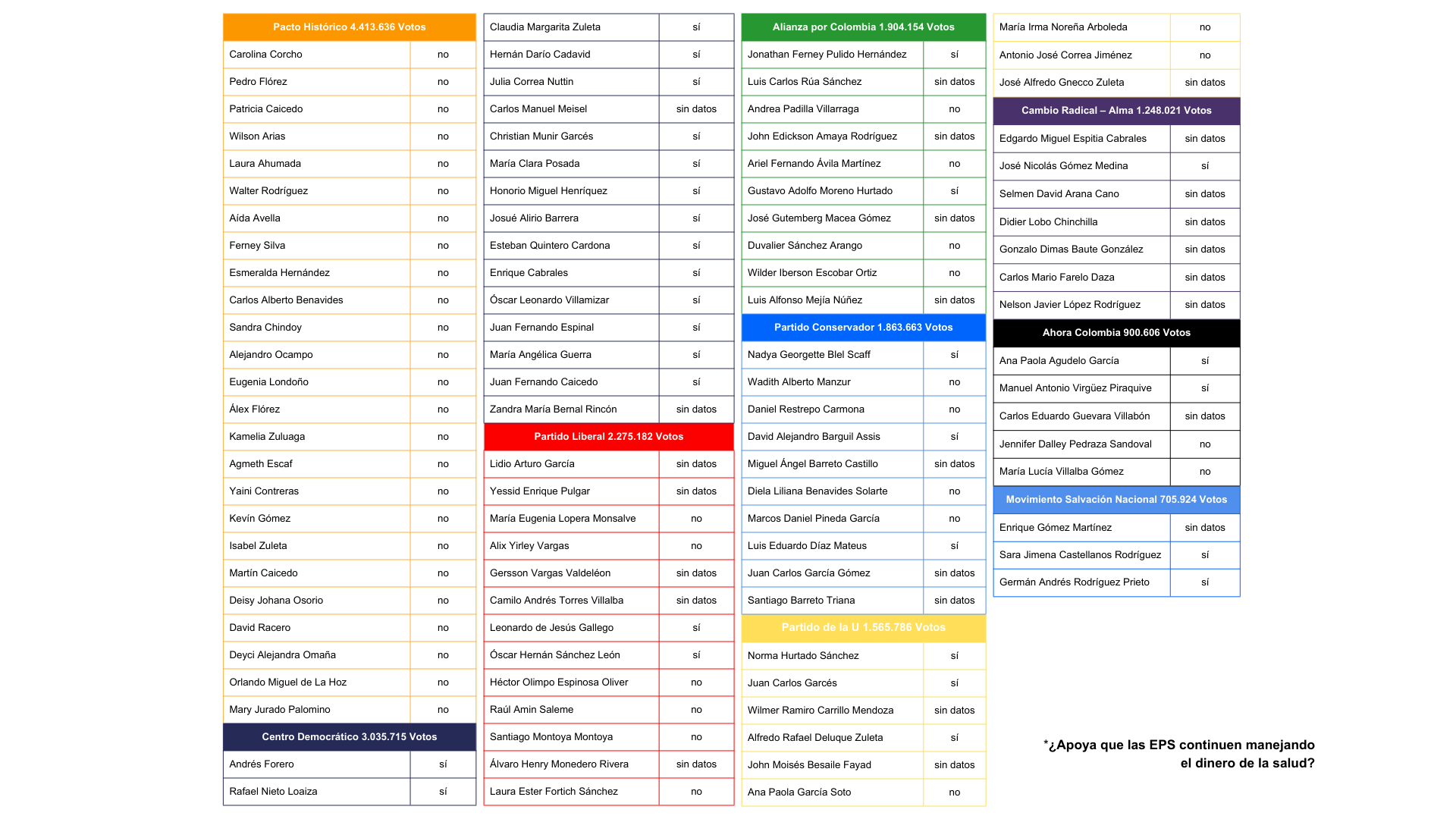 Según el análisis de los perfiles de los candidatos a las últimas elecciones publicados por La Silla Vacía, solo 44 de aprueban la propuesta de la reforma a la salud del Gobierno Nacional (ver cuadro).