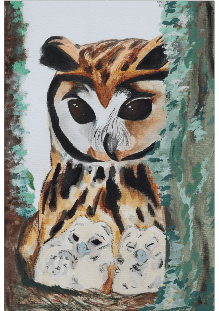 Cuatro búhos rayados ‒una hembra adulta con sus polluelos y un macho adulto‒ fueron avistados entre octubre y noviembre del 2023 en la UdeA. Su presencia enterneció las redes sociales, pero luego no se supo mucho más. Esta crónica reconstruye qué pasó después y presenta una hipótesis preocupante sobre el destino de estas aves rapaces. Los polluelos de búho rayado fueron avistados por primera vez el 9 de noviembre junto a su madre en la UdeA. La noticia de su nacimiento se hizo viral. Ilustración: Ana Sofía Peláez. I. Las apariciones El macho es el primero en ser avistado por un grupo de pajareros de Medellín a mediados de octubre. En los pocos videos de cuando era el único protagonista, se le ve descansando de su vida nocturna en las ramas medias de un árbol. Es por la tarde y no puede mantener sus ojos abiertos durante mucho tiempo, se rasca el tarso y los dedos con intensidad, mueve la cabeza a medida que abre y cierra el pico. Luego se relaja. Lo hace todo con los ojos cerrados y así quedará para siempre en las fotos donde parece que posa. No es la primera vez que un búho rayado (Asio clamator) aparece en la Universidad de Antioquia ni en la ciudad. En su distribución, desde el este de Perú hasta las Guayanas, pasando por Colombia y Venezuela, habita desde hace 30 años la cordillera Central en la que está Medellín. Como la deforestación es una de las causas principales por las que un búho adapta su vida a las urbes, el campus principal de la Universidad, que posee más de 2500 especímenes de plantas leñosas, es un hábitat capaz de albergar a esta y otras especies de fauna silvestre. Dos semanas después de que el macho fuera visto por primera vez, en un árbol cercano a su percha, aparece una hembra. Los búhos muestran dimorfismo sexual inverso, es decir que las hembras son de mayor tamaño o tienen características más llamativas que los machos. En esta, las plumas negras que hacen de orejas o cuernos son más largas, el iris es más claro y el color de sus alas es más oscuro y brillante. No se apoya voluptuosa sobre una rama para mostrar que es varios centímetros más alta ni levanta las alas para dejar ver si su pecho y su abdomen son mucho más grandes, solo se encoge y agacha la cabeza hasta que su mirada se pierde entre las hojas. Aunque también es por la tarde, abre los ojos con más frecuencia, parece que no descansa, está en constante alerta, inquieta, se acomoda una y otra vez con movimientos suaves hasta recostar su cuerpo contra el árbol. Debido a sus hábitos nocturnos y crepusculares, el estudio de búhos en Colombia es limitado; pero si esta pareja se ciñe a la regla, la hembra reposa sobre las ramitas que otra familia ha dejado ahí. Los búhos no construyen sus propios nidos, sino que incuban sus huevos en hoyos, sobre el piso, en huecos naturales de árboles o en nidos viejos de otras aves. Estas rapaces, además, siguen la tendencia de otros animales y son las hembras las que incuban mientras los machos las alimentan. En la mañana del 9 de noviembre aparecen dos polluelos en el bloque 4 de Ciudad Universitaria. Una bola de plumaje pobre y blanquecino, con el pico negro y dos líneas que son los ojos, se asoma entre las alas y el abdomen de la hembra. En la tarde hay más actividad, los polluelos son acicalados por su madre; les acomoda el plumaje, los limpia y les da calor. Sin equilibrio, el primero abre y cierra su pequeño pico para comunicarse y, en caso de emitir algún graznido, las cámaras a más de 15 metros de distancia no pueden captarlo. El segundo, que solo se deja ver cuando la hembra abre las alas por completo, estira el cuello tanto como puede para devolverle las caricias con el pico. No se sabe qué día nacieron, pero el tamaño de cada uno se asemeja al espacio que queda después de curvar las palmas de las manos y poner una frente a la otra juntando los dedos. No es la primera vez que hay un evento reproductivo en alguna sede de la Universidad de Antioquia y mucho menos de Asio clamator, pero es la primera vez que se hace viral. Además de los fotógrafos que se sumaron desde el primer avistamiento, el grupo de Ecología y Evolución de Vertebrados del Instituto de Biología y el Departamento de Gestión Ambiental de la División de Infraestructura Física, ambos de la Universidad, comienzan un plan de monitoreo. Crean formularios en Google para que los pajareros informen si aparecen más individuos en el campus, varios integrantes del grupo se organizan para llevar registro del nido durante cada hora y la División de Infraestructura Física envía vigilantes y jardineros a acordonar la zona para que nadie perturbe el proceso. Es noticia. El nacimiento se celebra en las redes oficiales de la UdeA e inunda de ternura los medios de comunicación regionales y hasta nacionales. No hay más registros visuales del macho. La hembra y los polluelos acaparan las pantallas. Son días tranquilos. Cuando los polluelos de búho rayado se convierten en ejemplares juveniles, y después en inmaduros, adquieren su anillo facial negro y son similares a un adulto, pero sin sus barradas tan oscuras ni definidas y con el plumaje todavía blanquecino. Sin embargo, no es posible ver a estos dos polluelos crecer: el 26 de noviembre, uno de los fotógrafos publica en su cuenta de Instagram que la hembra y sus crías fallecieron un par de semanas antes por, posiblemente, comer ratones envenenados, y que el macho fue encontrado muerto días después a causa de un trauma en su cráneo. Ver esta publicación en Instagram Una publicación compartida por @mrbencho II. Las hipótesis Las aves rapaces cazan en vuelo o desde las perchas, los sitios donde descansan del vuelo. Se