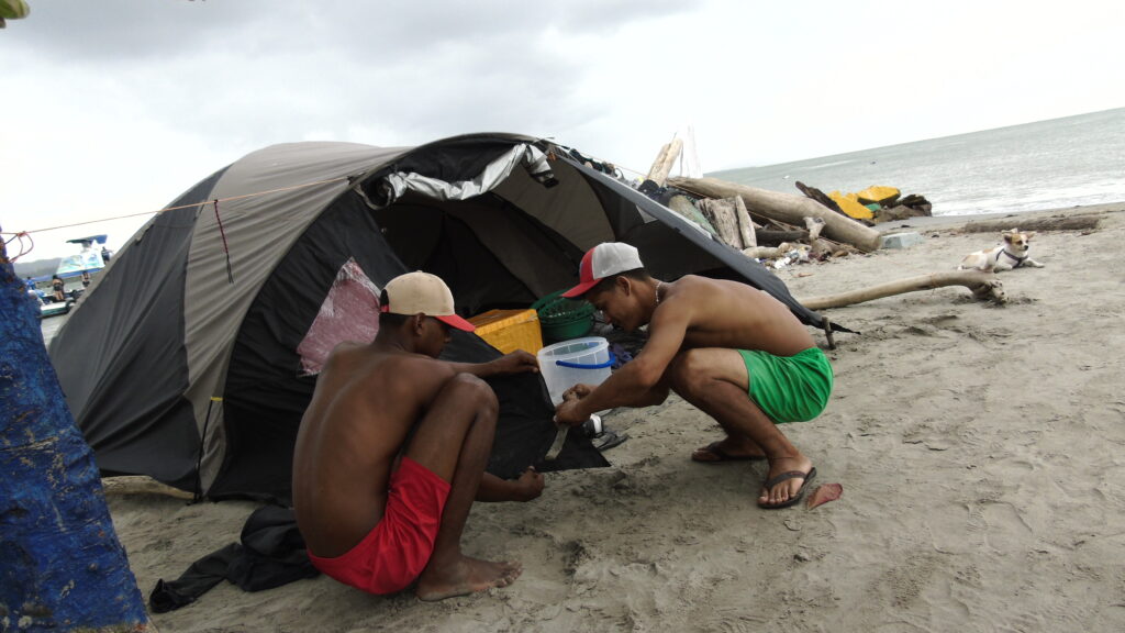 De los migrantes que pasan por Necoclí, muchos permanecen allí durante semanas. En su búsqueda de una vida más digna, trabajan para completar lo que cuesta el viaje y, de paso, sobrevivir. Venden empanadas, arepas, cocos, bebidas, ropa de segunda, carpas; también reciclan, limpian la playa, hacen cortes de pelo y delinean barbas; lo que toque, lo que puedan, casi siempre en la informalidad. Con el sustento del día a día esperan ahorrar suficiente para calibrar las brújulas que apuntan a Norteamérica. https://www.youtube.com/watch?v=T34TgLcaVW8 Carlos y Juan: juntos hasta el que sea su destino Diego Fernando Vega Granados / dfernando.vega@udea.edu.co Una frase fue suficiente para que Carlos Amoroso aceptara migrar: “Vámonos para Estados Unidos”, le dijo su amigo Juan García al darse cuenta de las pocas posibilidades de progreso que tendrían en su país, Venezuela. La respuesta fue un sí rotundo. Cuatro días después ya estaban en el Urabá antioqueño, con solo 120 dólares y la sorpresa de que antes de la selva del Darién había una playa en un municipio llamado Necoclí. Sabían que ese dinero no era suficiente, así que decidieron montar un negocio en el que solo dependieran de ellos: vender empanadas. No sabían hacer la masa ni dónde conseguir el carrito; no sabían cómo ni dónde iniciar, pero lo hicieron. El compatriota venezolano que los ayudaría a cruzar a Panamá les consiguió un puesto por 20.000 pesos al día, y con poco conocimiento, pero muchas ganas, empezaron. Juan aprendió de a poco a hacer la masa, mientras que Carlos recordó las recetas que sabía para preparar el relleno. Juan García tiene 34 años y es ingeniero de minas. Trabajaba en una mina junto con su familia en Esequibo, territorio de Guyana fronterizo con Venezuela, hasta que el año pasado, según cuenta, el Gobierno venezolano tomó el control sobre este y lo paralizó todo. De tener semanas en las que podía sacar de 30 a 40 gramos de oro, pasó a no tener empleo fijo y a rebuscarse el dinero vendiendo repuestos de carros. Llegó a buscar trabajo en Caracas en enero del 2024 y un día, mientras compraba dólares, decidió irse. Necesitaba compañía para lograrlo, así que contactó a su amigo del barrio, Carlos Amoroso, quien a sus 54 años y pese a ser pensionado de la Alcaldía, pasaba por un mal momento económico. El salario solo le alcanzaba para mantener a su niña de 13 años, su niño de 12 y su esposa, mientras vivían “de arrimados” en la casa de la suegra. Juan recuerda que cuando vivía en Casanay (estado Sucre), un tío suyo le negó una cerveza a Carlos, a pesar de que se habían criado juntos. Según Juan, la razón fue que Carlos estaba mal económicamente. Para él eso fue una humillación y sabía que, si seguía en su ciudad, le podía pasar lo mismo. Por eso, ya en Caracas, pensó en él para que se fueran. Le envió dinero para que llegara allí y al día siguiente iniciaron el viaje. *** Juan amasa y amasa la harina. Son las 10 de la mañana de un día opaco de finales de enero. La noche anterior intentaron dormir en la playa, pero los mosquitos no los dejaron. Cuando llegaron, unos días antes, pagaron hotel, pero cuesta 60.000 pesos por día y no pueden sacrificar el ahorro de 20 empanadas. Se levantaron a las cinco de la madrugada y los clientes, en su mayoría venezolanos que migrarán a Estados Unidos, acabaron con la segunda tanda de la mañana. Aplasta la masa, agarra una cucharada de relleno de pollo y la agrega. Cierra la empanada con una tasa, quita el exceso de masa, le da forma de luna y la pone en el aceite. Carlos está pendiente de que quede de un dorado perfecto y bien cocinada por dentro para pasarla a los clientes. Llevan solo cinco días vendiendo empanadas frente a la playa donde los migrantes esperan las lanchas para ir hacia Capurganá y ya se dieron cuenta de la rentabilidad del negocio. Para Carlos, las personas tienen que trabajar para conseguir lo que quieren: “Algunos de los migrantes se acostumbraron a dormir en carpa, a que les den la comida y no van a trabajar ni nada. Las personas tienen que trabajar para conseguir lo suyo”. Mientras el aceite frita las últimas empanadas de la mañana, Juan empieza a recoger los materiales. Comenta que no tenía pensado que su esposa se fuera para Necoclí, pero, como ahora están trabajando, le dirá que la va a esperar para que los tres se vayan o se queden. Entretanto, Carlos voltea con una pinza las empanadas que quedan en el aceite. Su propósito es trabajar duro para conseguirle una vivienda a su familia en Venezuela. Piensa en volver. Dice que si le gusta el sueño americano, se queda hasta completar el dinero para la casa y el carro, más un capital para iniciar un negocio en su país. Si el norte no es lo que les han dicho, dinero y oportunidades, están dispuestos a regresar, trabajar de nuevo en Necoclí y buscar un apartamento en arriendo. García lo tiene claro: “El migrante, donde le vaya bien, ahí se queda”. Venden las últimas empanadas y se sientan a descansar sin saber cómo les va a ir en la siguiente jornada, si dormirán en la playa junto con los mosquitos esa noche o si lograrán pasar el Darién. No tienen afán, van tranquilos esperando que todo se les dé. Están seguros de que seguirán juntos en esta travesía. Para donde va el uno, va el otro. https://www.youtube.com/watch?v=IEERy1bASLA Leidy: enfrentar la propia vida Juan José Gómez Agudelo / juanj.gomez2@udea.edu.co Son las seis de la mañana y, aunque cuesta levantarse de la colchoneta por el peso del trasnocho, toca empezar el día. La brisa salada azota las paredes de la carpa, el piso está lleno de arena y aún quedan algunos de los zancudos que no dejaron dormir. Leidy* y su familia salen al comedor comunitario. Luego regresan a la